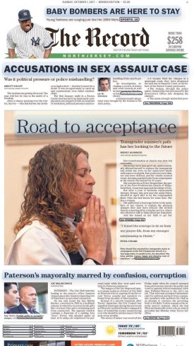 On Sunday, October 1, 2017, The Record (northjersey.com; part of the USA Today network) published the story: “Road to Acceptance: Transgender Minister’s Path has Her Looking to the Future.” Here is the front cover (the story continued for a full-page on 8A):